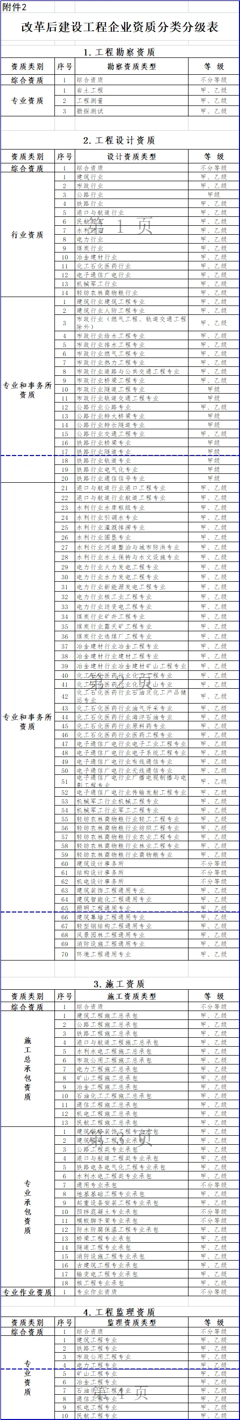 2.改革后建設(shè)工程企業(yè)資質(zhì)分類分級(jí)表